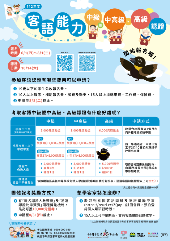 | (二) | 112 年度桃園市客語能力認證團體報名獎勵計畫: |